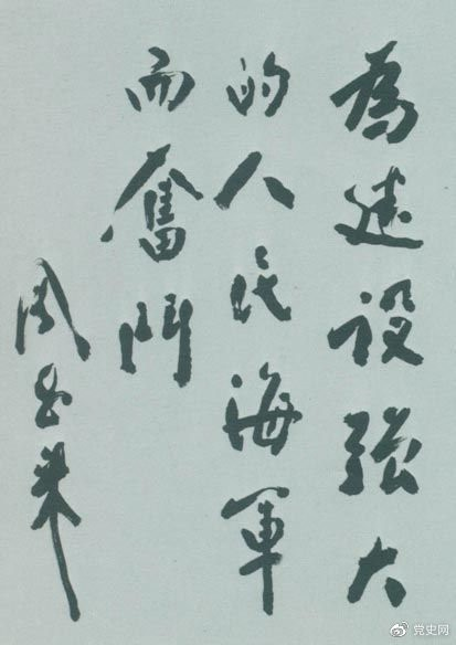 1953年11月3日,周恩來為東海某艦隊題詞。