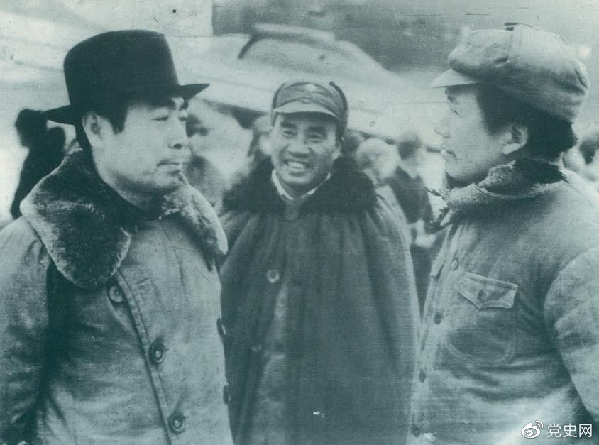 1945年11月11日,毛澤東、朱德赴延安機(jī)場迎接從重慶回來的周恩來。